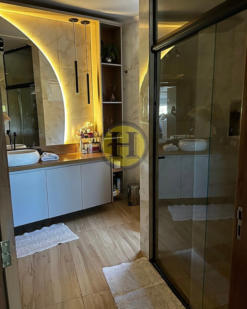 ✅ Apartamento 2: sala e cozinha acoplada, uma suíte, um lavabo, área de serviço